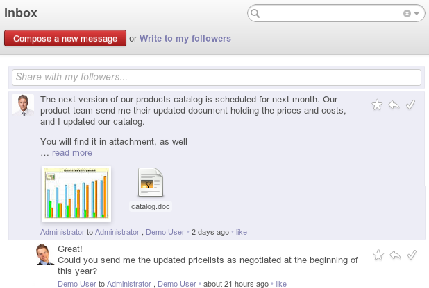 Voici les idées sur lesquelles reposent les outils de communication d'Odoo :
